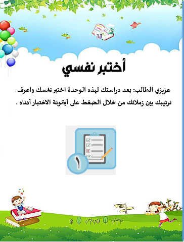 فرعاو       كسفن       ربتخا     ةدحولا هذهل           كتسارد دعب            :بلاطلا يزيزع