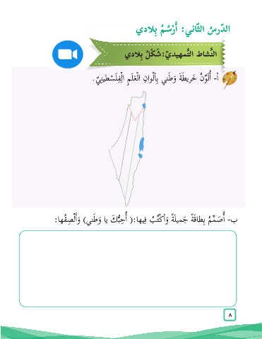 ب -أ� َص ِّم ُم بِطا َق ًة َجمي َل ًة َو أ� ْك ُت ُب ِفيها (:أ� ِح ُّب َك يا َو َطني) َو�ألْ ِص ُقها: