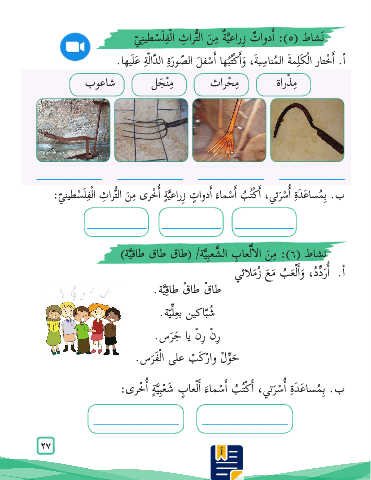 َنشاط ( :)٥أ�دوا ٌت ِزراع َّي ٌة ِم َن ال ُّترا ِث الْ ِف َل ْسطي ِن ّي