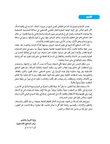 ال أ�مر الذي انعكس على الرؤية الوطنية المطورة للنظ�م التعليمي الفلسطيني في مح�ك�ة الخصوصية الفلسطينية