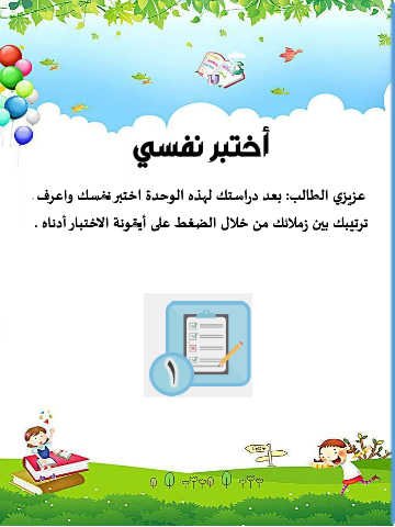 فرعاو       كسفن       ربتخا     ةدحولا هذهل           كتسارد دعب            :بلاطلا يزيزع