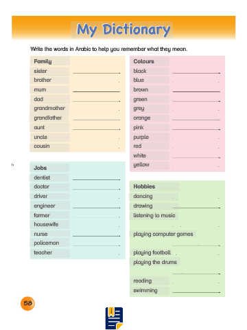 Write the words in Arabic to help you remember what they mean.