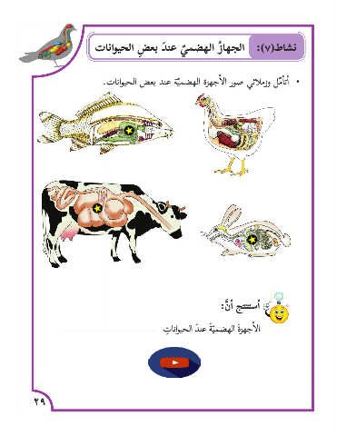 نشاط( :)٧الجها ُز الهضم ّي عن َد بع ِض الحيوانات •�أت�أ ّمل وزملائي صور ال�أجهزة الهضم ّية عند بعض الحيوانات. أ�ستنتج أ� َّن: ال�أجهز َة الهضميّ َة عن َد الحيوانا ِت 29
