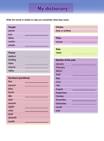 Write the words in Arabic to help you remember what they mean.