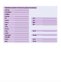 Adjectives (words to talk about people and places) famous interesting exciting healthy fat thin young old heavy light high low wide strong long short clever expensive cheap beautiful warm cool dirty clean 9780230415577_text.indd 70 19/06/2013 12:13