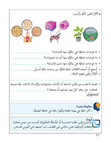 . _____________ ىمــسُت ةيئانب تادحو نم نوكتت ةيحلا تانئاكلا ماسجأا نأا جتنتسأا ٤ .