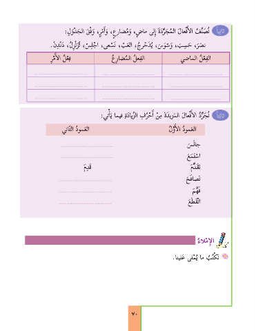 :لوْدجلا قْفو ،ٍرمأاو ،عراضمو ،ٍضام ىلِإا َةَدرجملا َلاعْفأ�لا فِّنصُن