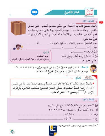 729هو مك ّع ٌب كام ٌل ،و 9هو جذ ٌر تكعيب ُّي للعدد .729